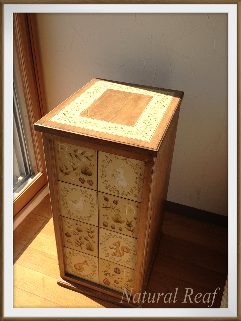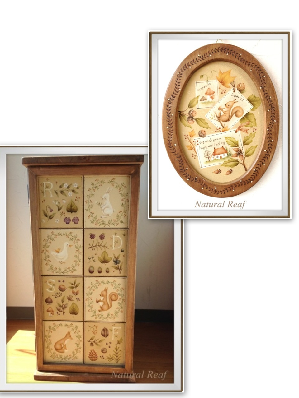 森の仲間のペイントボックス 投稿日時: 2014年2月26日 投稿者: Fumi 本日の作品は、だいぶ前に描いた作品です。画像ではわかりにくいですが、結構大きいんですよ。 出口むつみ先生デザイン 《森の仲間のペイントボックス》 扉をあけると、中にも絵が… 天板にもオリーブ模様が一周入ってます。 完成までにかなり時間がかかった記憶があります。 大変でしたが、出来上がって満足、満足♪ とっても可愛いデザインでお気に入りです。 先日紹介した《リスと木の実のフレーム》と並べると、お揃いのようで良いですね。