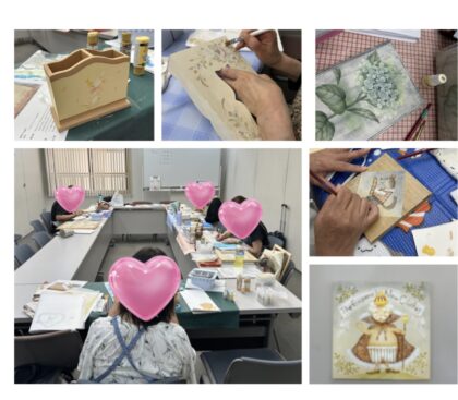 11月の作品展のアレンジ作品を頑張ってる生徒さまもいらっしゃいました。