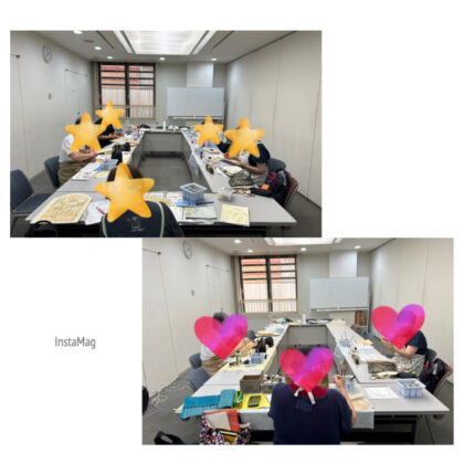 フレーム周りの模様とステッチはご自宅での仕上げとなりまますが、今日のレッスンでほぼ完成となりました。