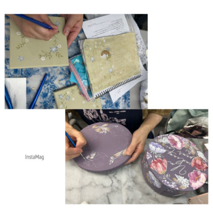 I様 出口むつみ先生カリキュラム中級ラスト作品『野の花のタイルフレーム』を一年ががりでコツコツと頑張って描いてくださってます。